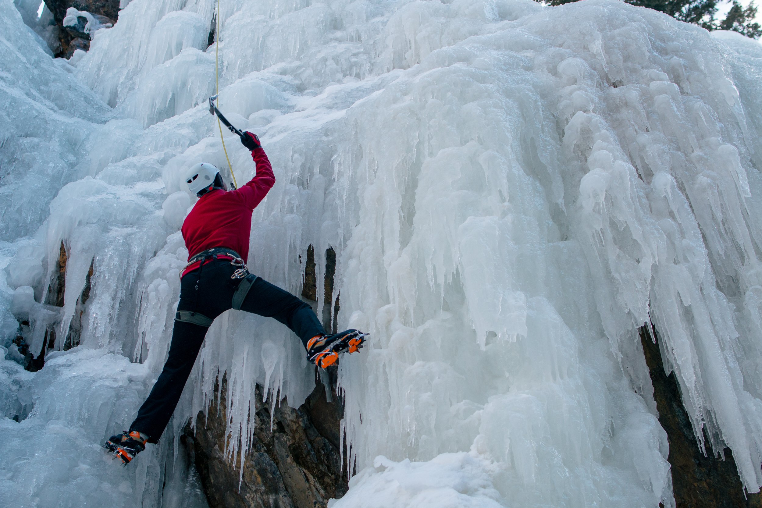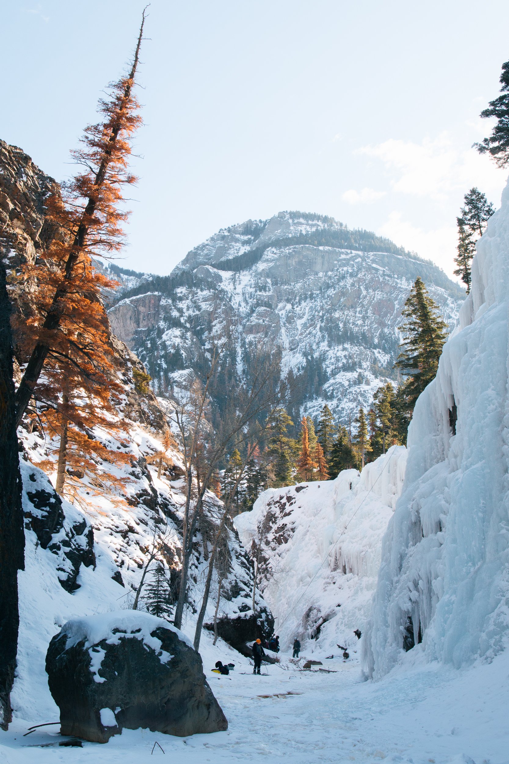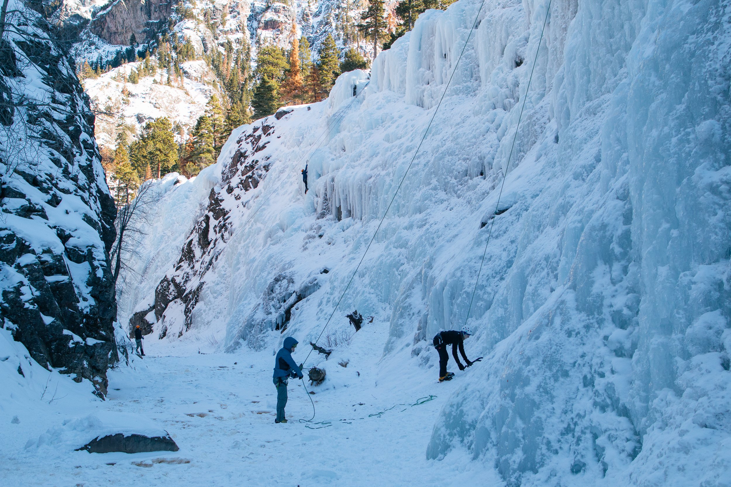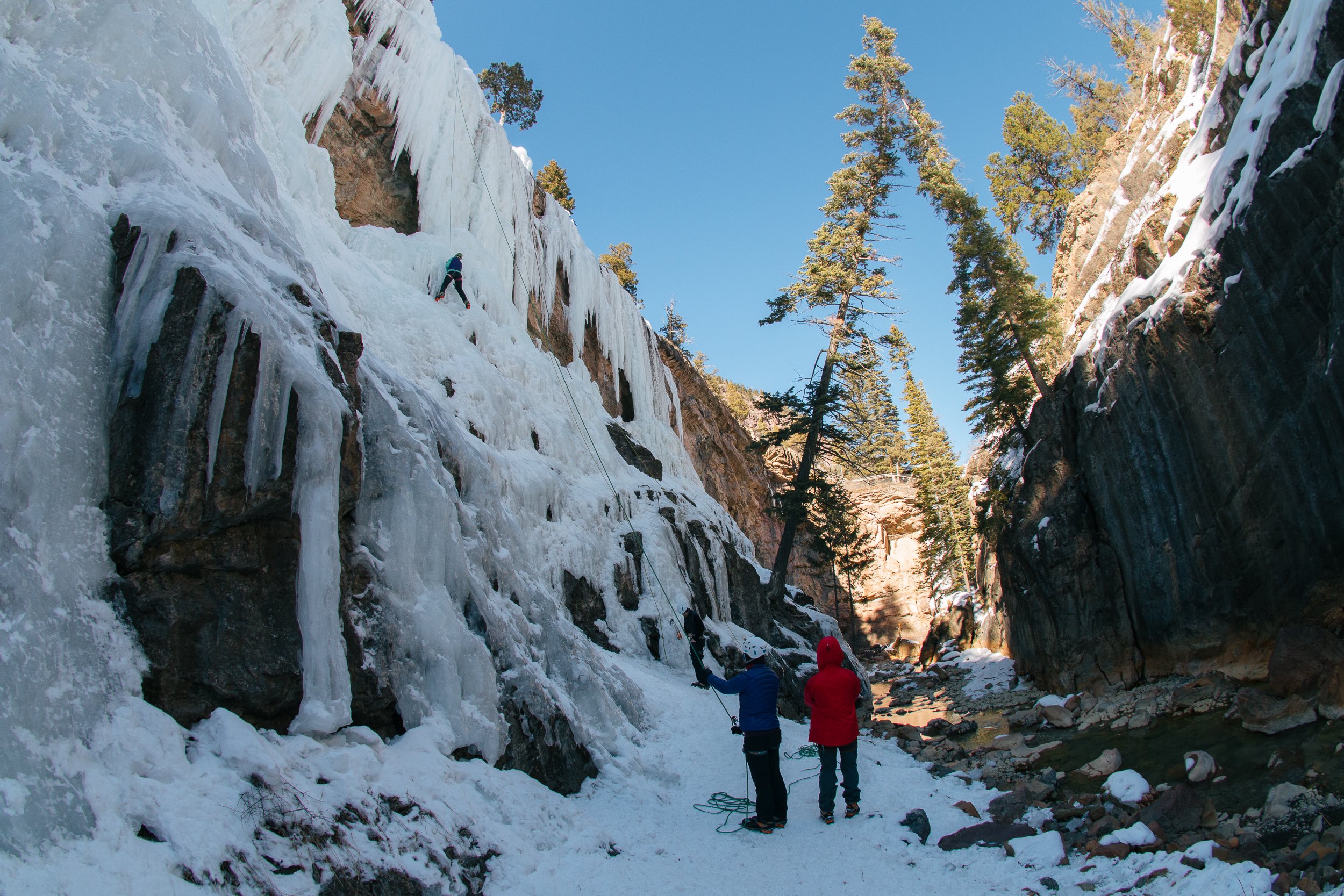 The small southwestern Colorado town of Ouray is a world-renowned destination for ice climbing. While the surrounding mountains often feature plenty of worthy routes, the Uncompahgre Gorge hosts miles of man-made ice walls on the edge of town each winter. In 2014, I spent a week swinging ice axes and soaking in local hot springs with friends.